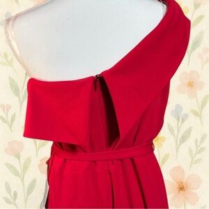 Marina Red One Shoulder Jumpsuit Women’s Size L Nordstrom Formal Wide Leg Belted
