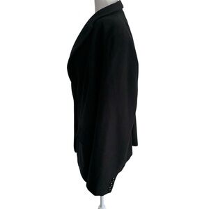 Experience the perfect blend of comfort and style with this Marina Rinaldi black blazer style jacket. Crafted with a relaxed fit this piece is ideal for business casual settings or throwing over any outfit to add cozy warmth. Its soft material is a wool/angora blend. Made in Italy. Size 27 is approximately an 18W according to brand. See measurements below.