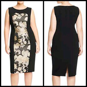 Marina Rinaldi Dorico Metallic Floral Midi Dress Black Gold Cocktail Size 16W