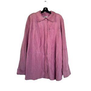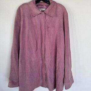 Marina Rinaldi Pink Suede Leather Jacket Shirt Zipper Size L 27