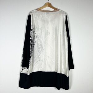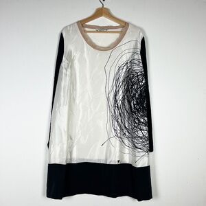 Marina Rinaldi Silk Satin Made In Italy Scoop Neck Abstract Print Pullover Dress