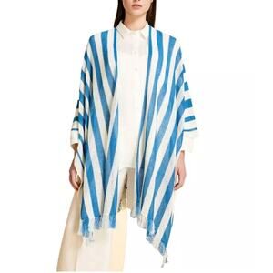 Marina Rinaldi NWT Sesamo Blue & White Stripe Linen Blend Poncho Cape size Large
