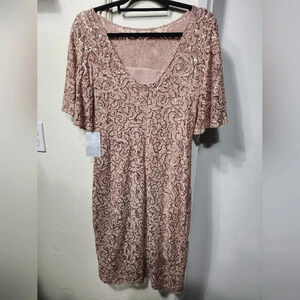 Marina Sequin Lace Midi Elegant Blush Dress NWT - Size 6