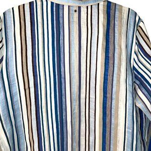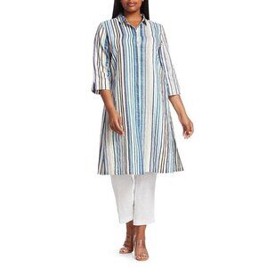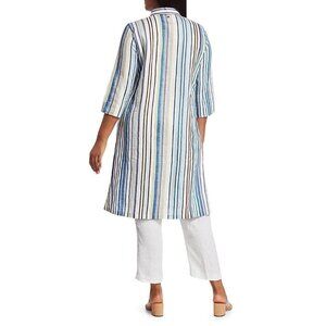 Marina Sport Diabese Tunic Womens Size 14 Striped Linen Blend Button Front Slits