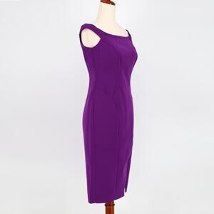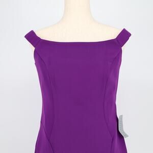 Marina Women Purple Off-The-Shoulder Shift Stretch Midi Cocktail Dress Size 4