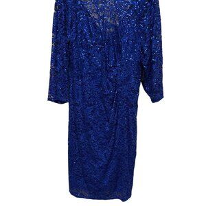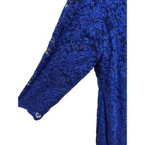 Marina Women's Dress Sequin Lace Overlay Cocktail Blue Back Zip Knee Length 22W