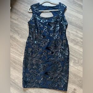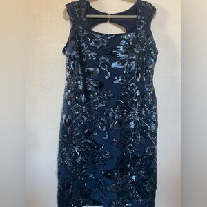 Marina sequin party dress in navy. Size 16 NWOT!