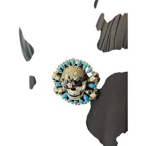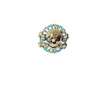 Marine Blu Black Halter Top Dress Knee Length V Neck Skull Size S Small