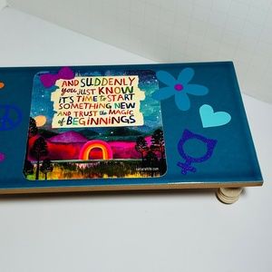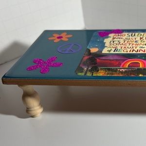 New: Super cute tray, riser, accent piece, this is a teal like color, size is approx. just under 4x8 inches