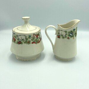 Marine Foundation Toys for Tots Sugar & Creamer Set. Ivory/Multicolored. Gilded. Porcelain. Train & Toys. Very good condition.