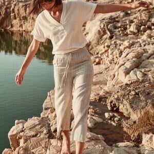 Marine Layer Aly Tencel Linen Blend Wide Leg Striped Ankle Women Pant Sz Medium