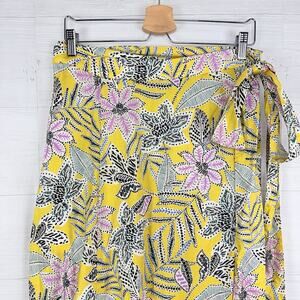 Marine Layer Anna Wrap Midi Skirt Size XL Bamboo Floral Yellow Pockets Flowy