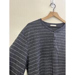 90s Minimalist Normcore Athleisure Lounge Henley Shirt Striped XL Preppy Laid back Charcoal Gray.