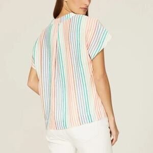 Marine Layer Bali Tunic Top Linen Blend Cap Sleeve V-Neck Rainbow Stripe NWT S