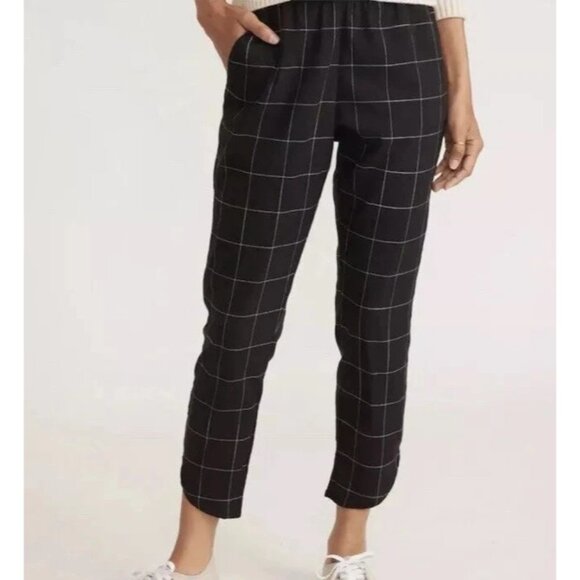 Marine Layer Black Windowpane Check Allison Pants Women Medium Cotton Blend