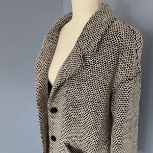 Stylish black and white blazer. Features a classic design. Perfect for layering. Never worn, bought but too big on me.