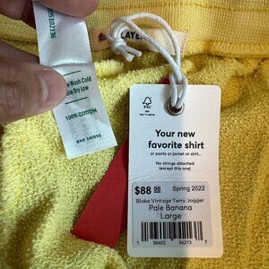 Marine Layer Blake Vintage Terry Drawstrings Joggers Large in Pale Banana