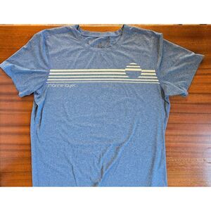 Soft blue tee with short sleeves. Features a stylish stripe design.