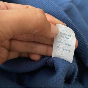 Comfortable blue zip-up hoodie with drawstrings and front pockets.