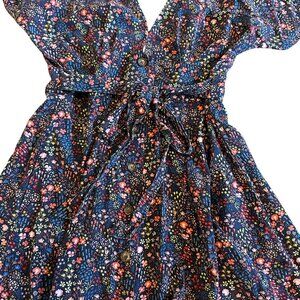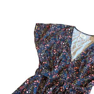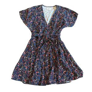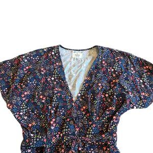Marine Layer Camila Navy Blue Micro Floral Dress Button Front V-Neck Size Medium