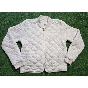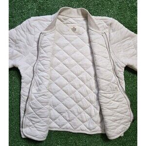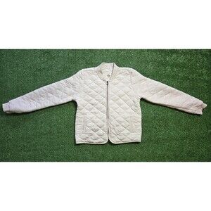 GENERAL: Pre-owned quilted beige jacket in good condition, ready for its next home; it has been washed and cleaned.