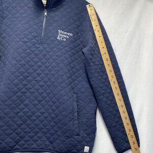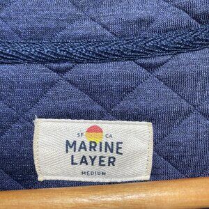Marine Layer Corbet Quilted Pullover 1/4 Zip Mock Neck Sweater Men Medium Navy