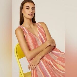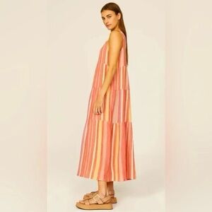 The Corinne Maxi Dress from Marine Layer easily transitions from beach to boardwalk with its summertime print and breezy cotton fabrication It gives the linen look, but much softer. So comfortable! It is meant to fit looser.