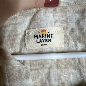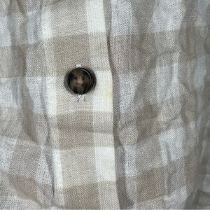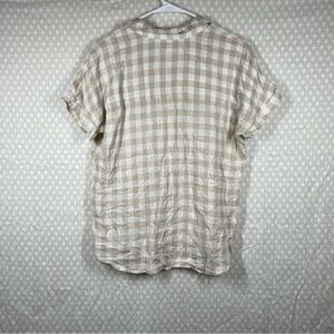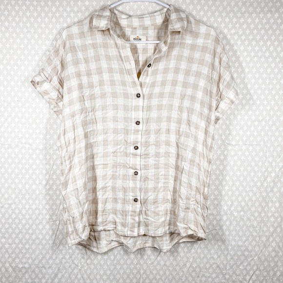 Marine Layer Cream Tan Linen Blend Gingham Button Up Top