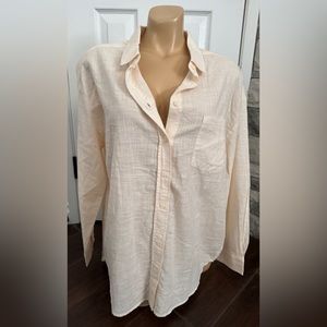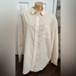 π Marine Layer Donna Button Down Long Sleeve Shirt in Cream Tan XL 100% Cotton