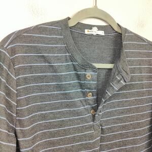 Marine Layer Double Knit Henley Shirt Mens Small Midnight Navy Stripe Preppy