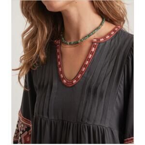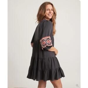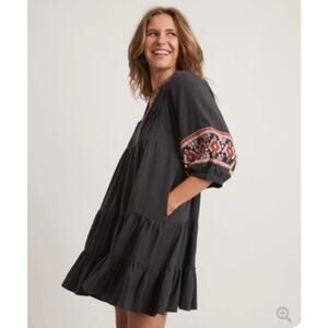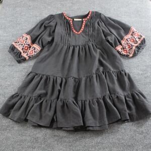 Marine Layer Dress Womens Large Black Embroidered Boho Peasant Tiered Lyocell