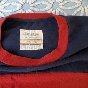 Navy rainbow tee in great used condition. Size XS. Only flaw is very small hole on back (pictured).