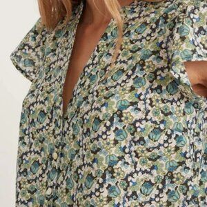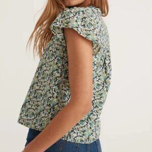Marine Layer Esme Flutter Sleeve Top in Boho Floral Blue/Green Retro 60s/70s M