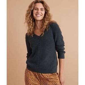 Marine Layer Ezra V-Neck Sweater in Anthracite Women's Size XL