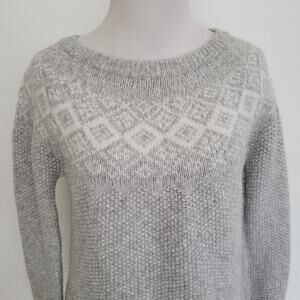 Marine Layer Fair Isle Sweater Boat Neck Gray White Wool Blend Women Small