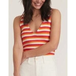 Marine Layer Finley Tank Knit Sleeveless V-Neck Sweater Top Sunset Stripe NWT XL