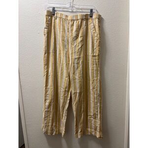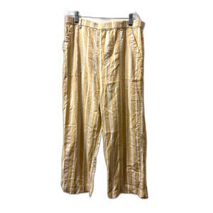Marine Layer Frankie Wide Leg Pants Yellow Gold Stripe Hemp Beachy Size Large