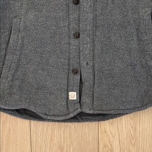 Stylish gray button-up jacket with front pockets. Perfect for casual wear.