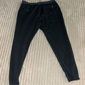 Stylish black joggers with blue trim. Features adjustable drawstring waist. Ideal for casual outings.