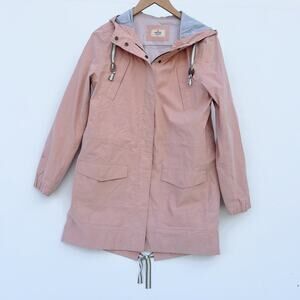 Marine Layer Hooded Rain Jacket Blush Pink Zip Up Long Windbreaker Small