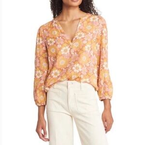 Marine Layer Jamie Banded Floral Top X-Small Cottagecore Split Neck Is New Without Tags.