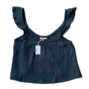Marine Layer Jude 100% Cotton Black Boho Flutter Sleeve Top NWT Size Medium