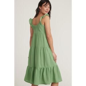 Marine Layer Jude Dress Flutter Sleeve Tiered Swing Midi Jade Sheen Green NWT S