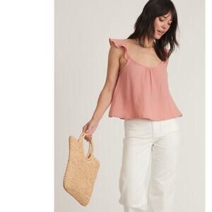 Marine Layer Jude Tank Top Flutter Sleeve Crinkled Cotton Rosette Pink NWT Small Cut to float away from the fluttery ruffled straps, this tank is up for all your plans in a lightweight, crinkled fabric that makes looking effortless so easy. - Condition ~ NEW WITH TAGS - Size: Small - Color: Rosette / Pink, Purple - Material: 100% cotton - Crinkled fabric - Standard fit - Sleeveless - Flutter sleeves - Scoop neck - Signature Double Cloth - Unlined - Machine wash - Imported