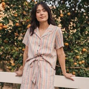 Marine Layer Karleigh Belted Short Rainbow Stripe Small pull on hemp high rise