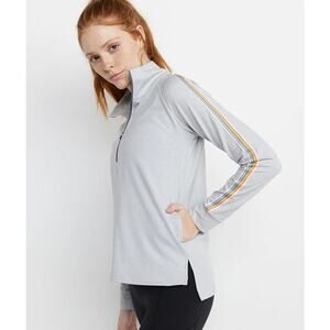 Marine Layer Kerri Quarter Zip Raglan Rainbow Stripe Trim Small Gray Wicking