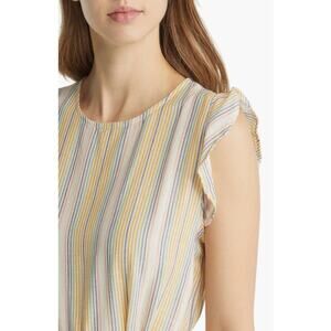 This lyocell-and-linen minidress has it all: cool pastel stripes, a flouncy hem, flutter sleeves and a braided tie for a sweet warm-weather look.