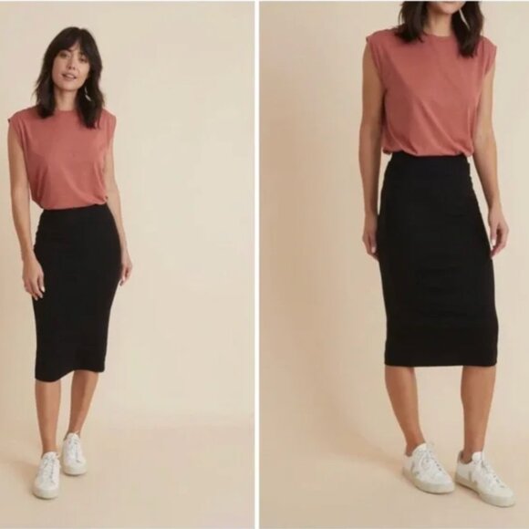 Marine Layer Lexi Classic Black Pencil Midi Robbed Skirt Size Medium