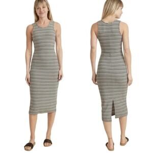 Marine Layer Lexi Daytime Dress Rib Sleeveless Bodycon Midi Olive Stripe NWT L
