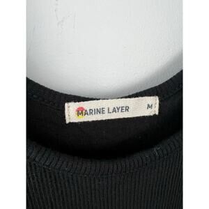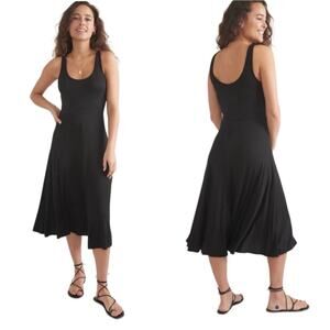 Marine Layer Lexi Fit & Flare Ribbed Knit Midi Dress in Black Medium